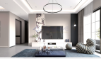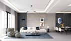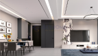 Expansive windows invite natural light while muted tones and premium finishes give the space a clean, elegant atmosphere. Whether entertaining or working from home, this layout supports both lifestyle and function.